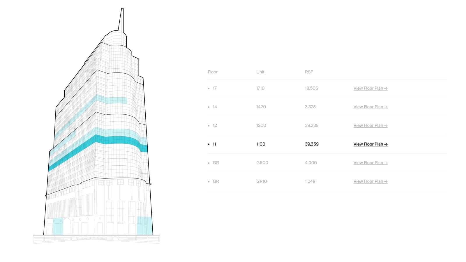 High-end office properties require marketing tools that reflect their sophistication. Our custom stacking diagram solutions combine SVG manipulation, 3D modeling, responsive design, and strategic UX to create branded interactive experiences guiding prospective tenants from building overview to detailed suite information.